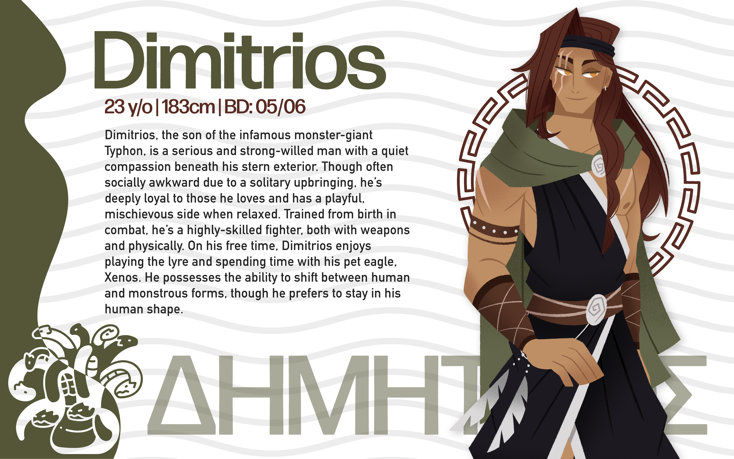 These are one-page biographies for my original character concepts. The general format of the biographies features the name, age, height, birthday, and a short bio of the character, along with an image of them to the right.